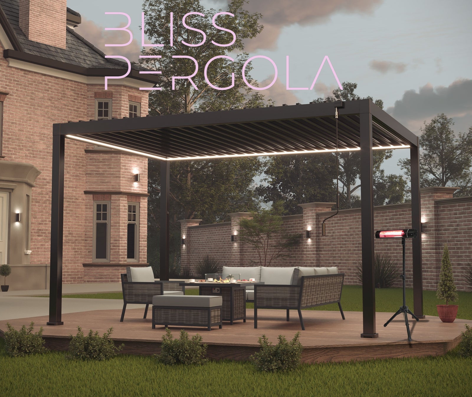 LuxShade™ 4×4m Aluminium Pergola with LEDs, Double-Layered Louvred Roof
