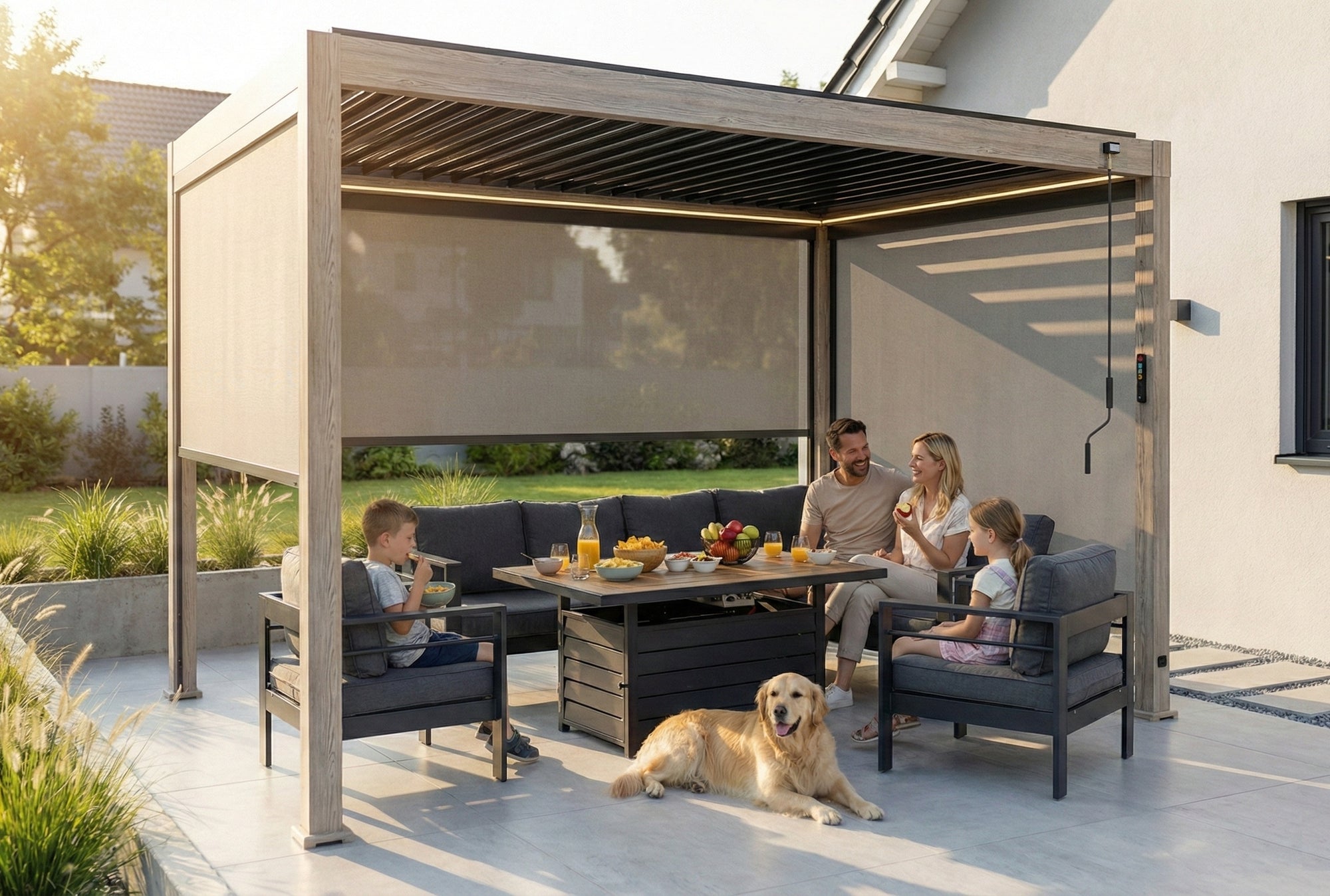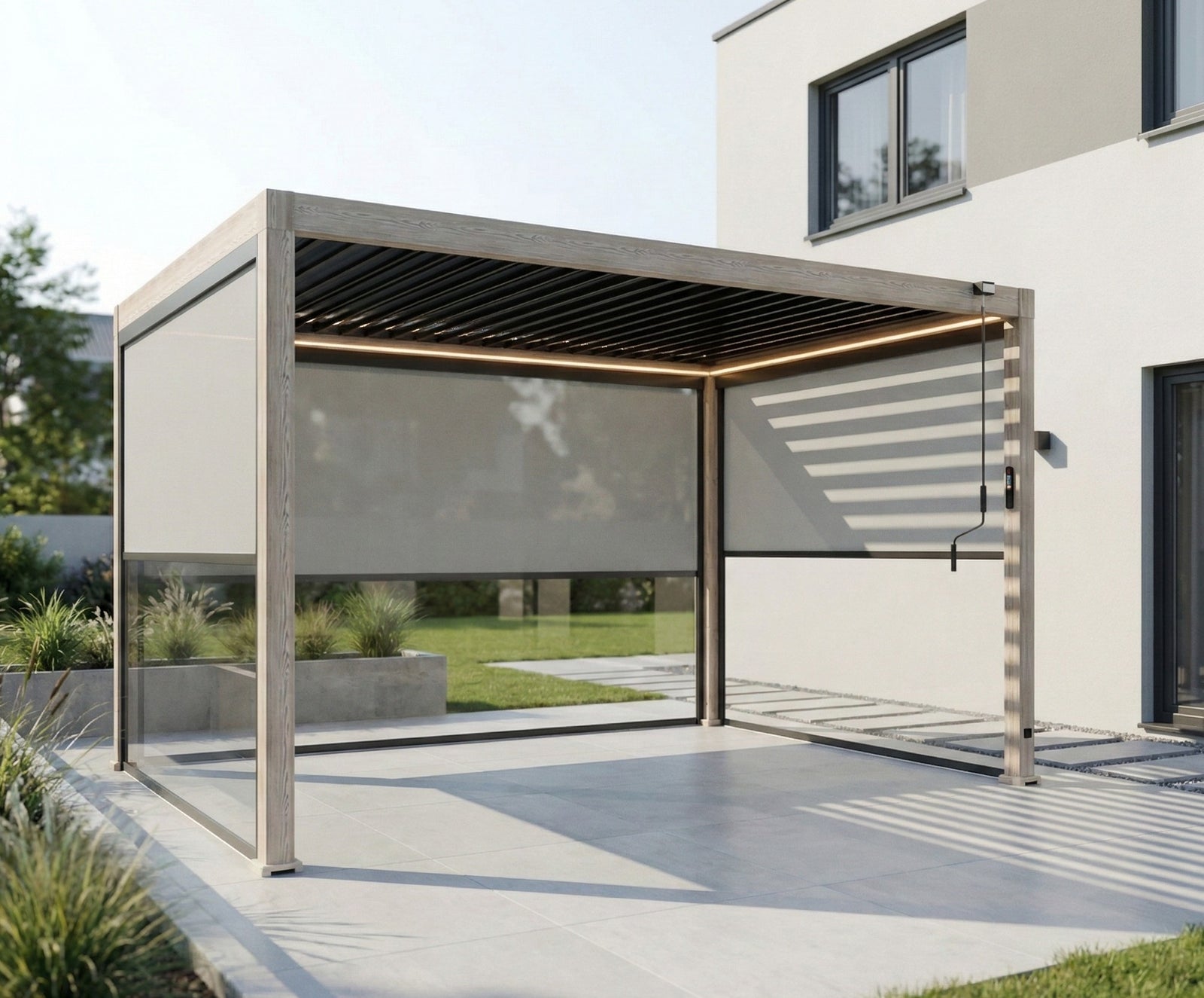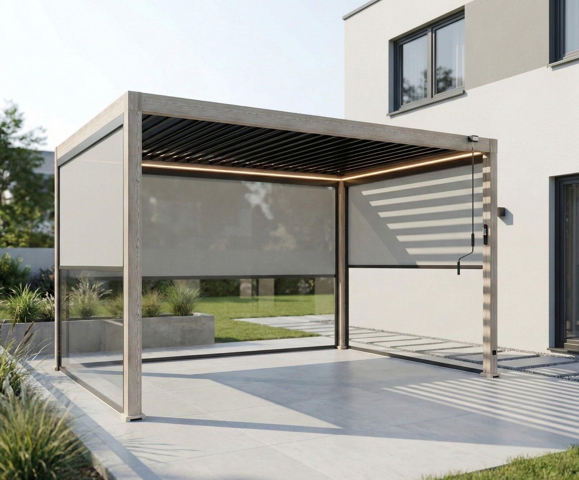 The perfect balance of space and style: 3 × 4 m aluminium pergolas. Give your patio the upgrade it deserves. Our 3 × 4 m aluminium pergolas deliver a generous, family-friendly footprint that suits dining sets for 6–8, outdoor kitchens or a lounge + hot-tub combo. Powder-coated aluminium frames are sleek, strong and low-maintenance, while louvred roofs let you switch from sunshine to shade to rain protection in seconds—with integrated guttering to keep the area dry.