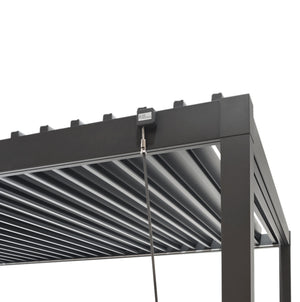 The pergola is designed for use under normal outdoor conditions. In anything stronger than a steady breeze, the louvres must be opened and windscreens fully retracted (pulled up) to reduce wind resistance and prevent structural stress or damage.