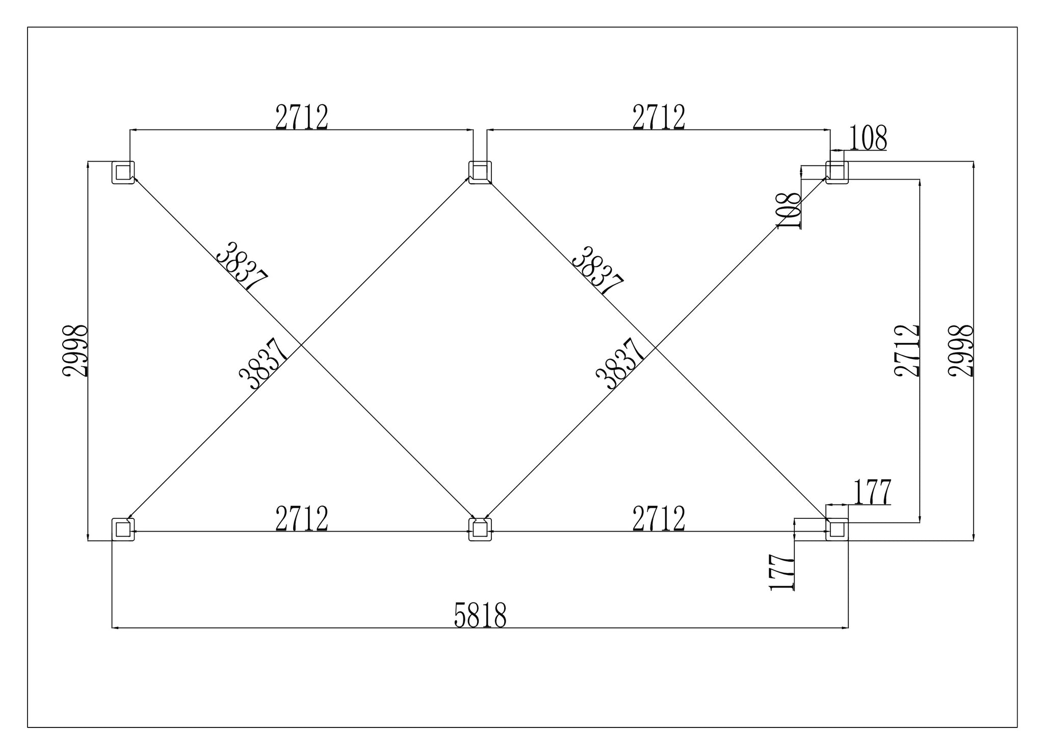 Internal clear span: 2 × 2712 W (between posts) × 2712 D