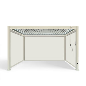 Create the ultimate outdoor atmosphere with built-in LED mood lighting seamlessly integrated around the gutter system. Our latest improved pergola models now feature an enhanced integrated control panel, replacing the previous basic light switch. This upgraded system lets you choose between three premium light temperatures—warm, cool and natural—so you can tailor the ambience to any setting. You can also dim or brighten the LEDs with precise control, giving you complete flexibility from soft evening glow to bright task lighting, all at the touch of a button.