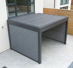 Enhance your outdoor living space with the MotaShade™ Aluminium Pergola—a seamless blend of modern design, lasting durability, and all-season functionality. Featuring motorised tilting roof louvres, it transforms at the touch of a button: fully closed for shelter or tilted open to let in fresh air and light. Come rain or shine, the Bliss pergola ensures you make the most of your garden, whatever the British weather brings. Finished in a sleek anthracite grey, this premium pergola not only offers exceptional protection but also elevates the style and value of your home. 100% aluminium, including the double louvres (unlike cheaper versions with steel roofs).