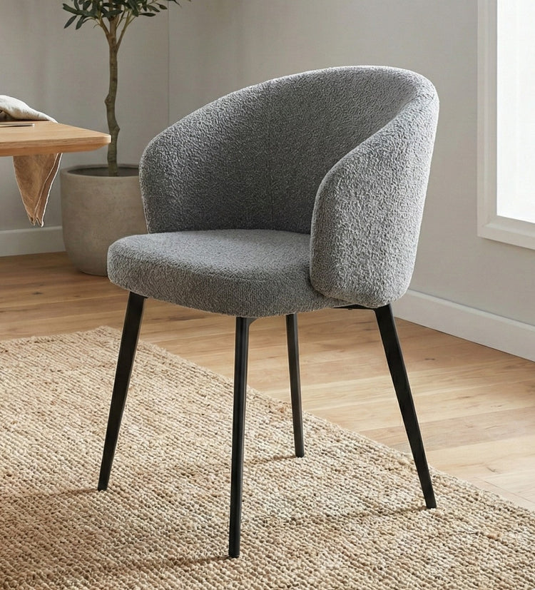 Alice Set Of 2 Modern Bouclé "Teddy" Fabric Dining Chairs | Grey