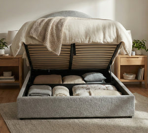 BEAUTIFUL DESIGN – Transform your bedroom with an "Emma" ottoman storage bed. It features an endearing rainbow-shaped padded headboard with an easy gas-lift ottoman frame providing plenty of under-bed storage. The premium soft-touch fabric provides a beautiful finish for this stylish, yet practical bed.