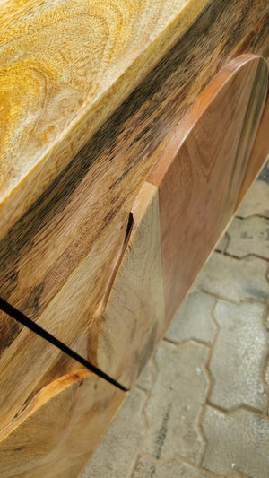 This sideboard feels both contemporary and timeless. The natural variations in mango wood make every cabinet unique, while the smooth arch motifs create a premium designer look without the designer price tag.