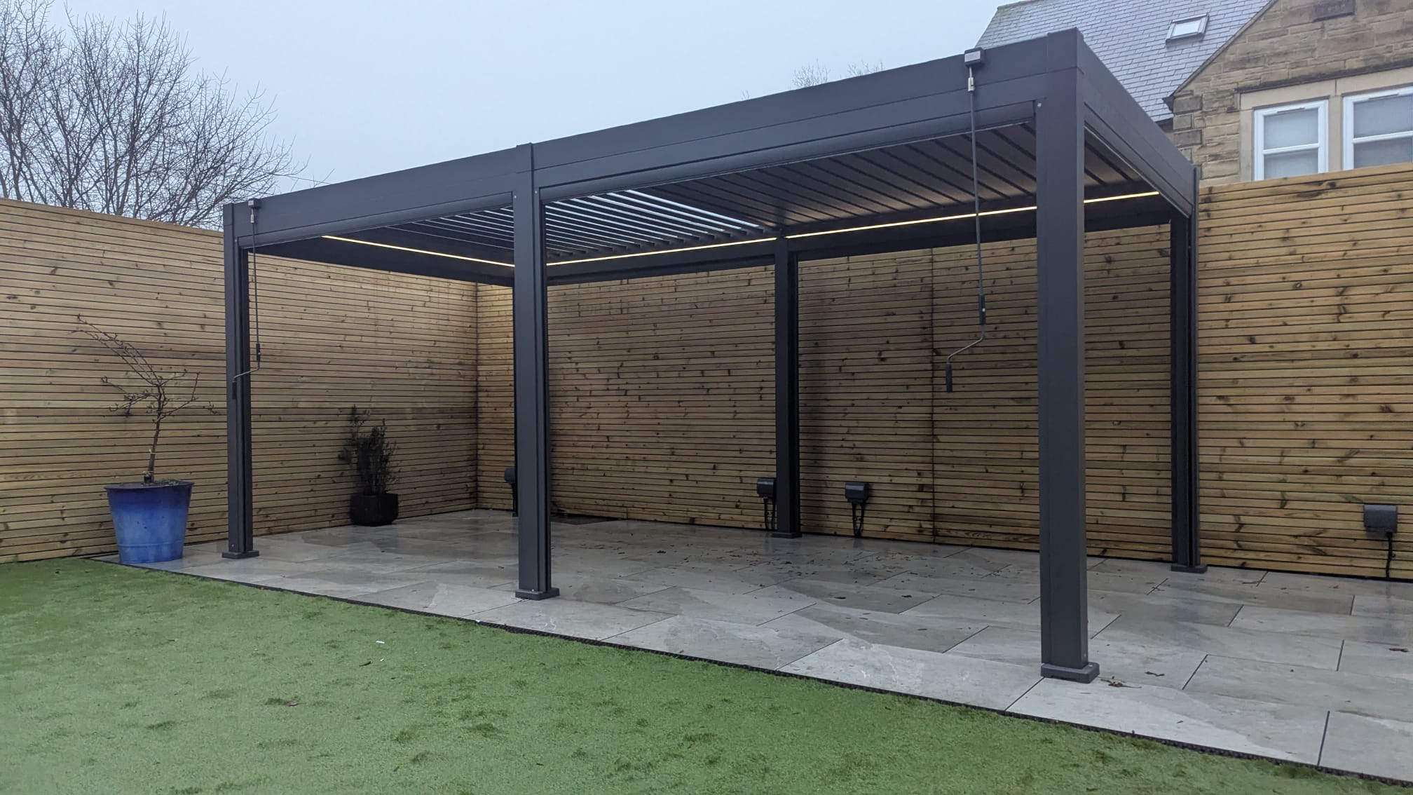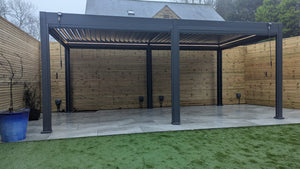 Upgrade your outdoor space with the LuxShade™ Aluminium Pergola, a perfect blend of modern design, durability, and year-round functionality. Finished in a sleek anthracite grey, this high-quality pergola enhances your home’s aesthetic while providing exceptional protection from the elements. 100% aluminium, including the double louvres (unlike cheaper versions with steel roofs).