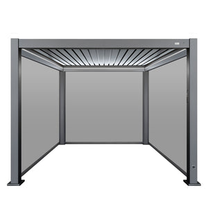 Enhance your outdoor living space with the MotaShade™ Aluminium Pergola—a seamless blend of modern design, lasting durability, and all-season functionality. Featuring motorised tilting roof louvres, it transforms at the touch of a button: fully closed for shelter or tilted open to let in fresh air and light. Come rain or shine, the Bliss pergola ensures you make the most of your garden, whatever the British weather brings. Finished in sleek anthracite grey, this premium pergola not only offers exceptional protection but also elevates your home's style and value. 100% aluminium, including the double louvres (unlike cheaper versions with steel roofs).
