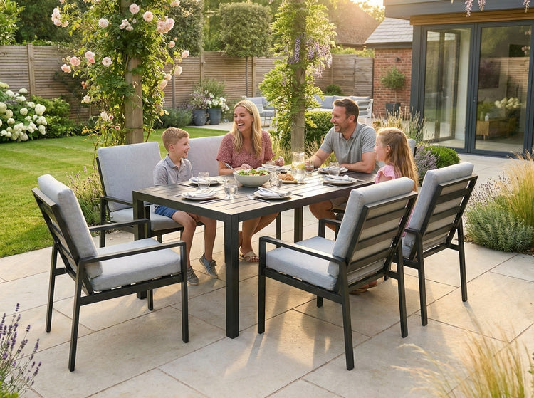 BEAUTIFUL DESIGN - Make a statement in your garden with this modern clean-cut aluminium dining set. If you are looking for a stylish outdoor dining set that has supreme comfort and great value for money, then look no further.