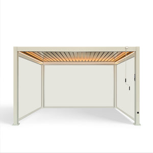 Create the ultimate outdoor atmosphere with built-in LED mood lighting seamlessly integrated around the gutter system. Our latest improved pergola models now feature an enhanced integrated control panel, replacing the previous basic light switch. This upgraded system lets you choose between three premium light temperatures—warm, cool and natural—so you can tailor the ambience to any setting. You can also dim or brighten the LEDs with precise control, giving you complete flexibility from soft evening glow to bright task lighting, all at the touch of a button.