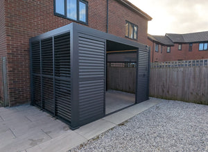 Enhance your LuxShade™ Pergola with the 4M Aluminium Shuttered Louvre Sliding Door System, designed to provide the perfect balance of privacy, protection, and modern style. Built from premium-grade aluminium with a sleek powder-coated finish, this sliding door system adds versatility and luxury to your outdoor living space.
