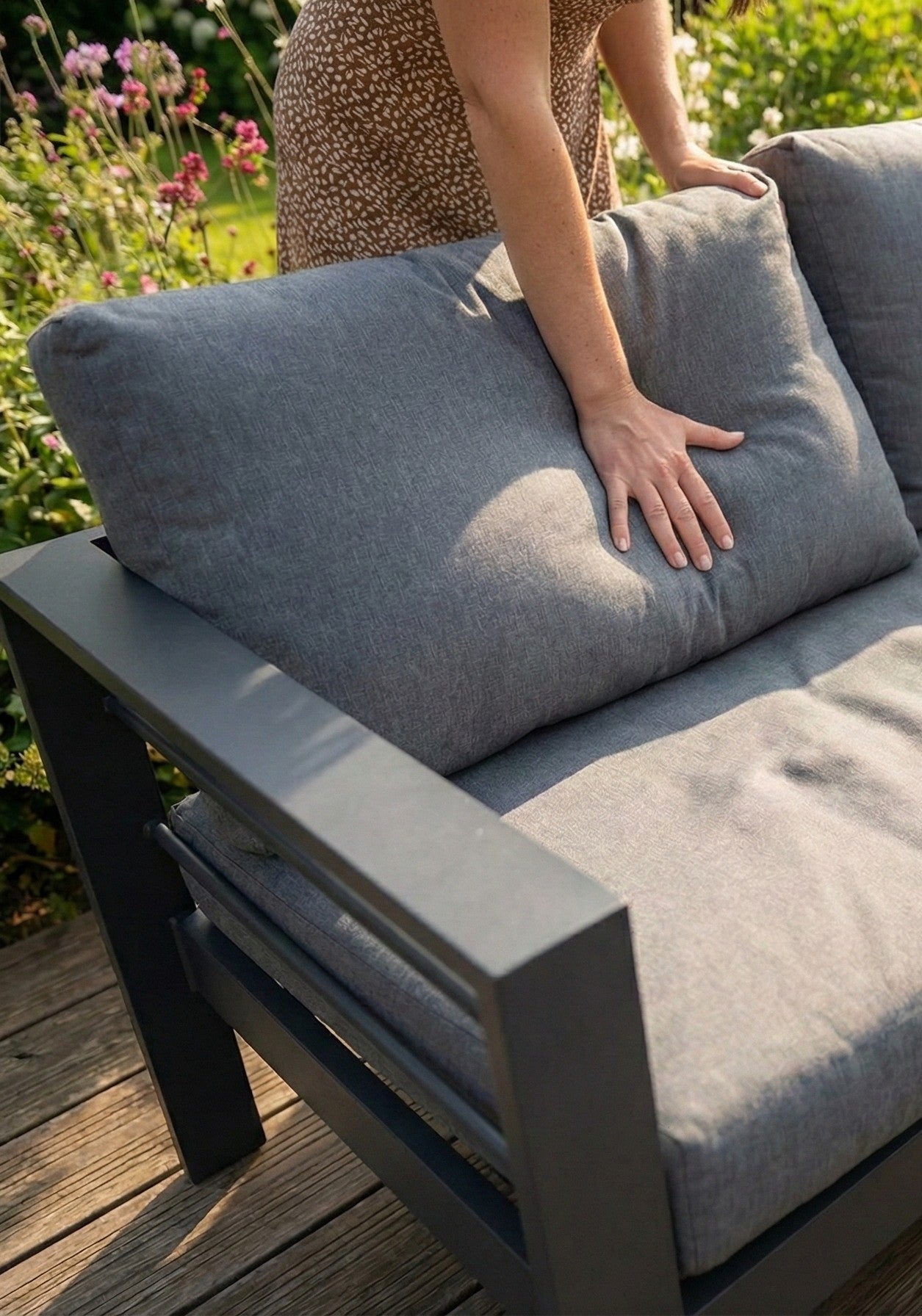 Sofas and Table Frame: Quality powder-coated aluminium that is weather- and rust-resistant.