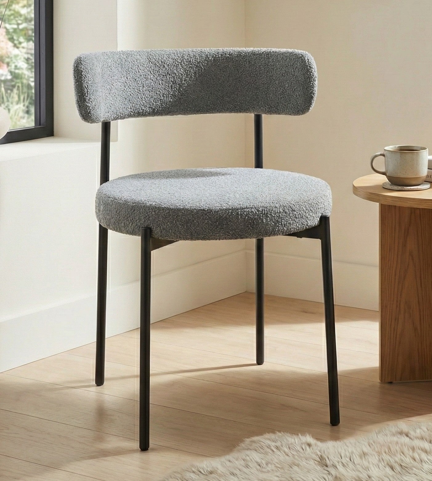 Danni Set Of 4 Modern Bouclé "Teddy" Fabric Dining Chairs | Grey