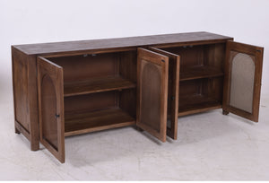 Adjustable Organisation: Each compartment is fitted with a central internal wooden shelf, creating four large storage tiers perfect for tableware, linens, or media equipment.