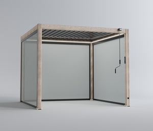 LuxShade™ by Bliss Pergola – Heavy-Duty 100% Aluminium LED Pergola with Double-Layered Louvred Roof & 3 Windscreens – 3x3m Wood Grain Effect