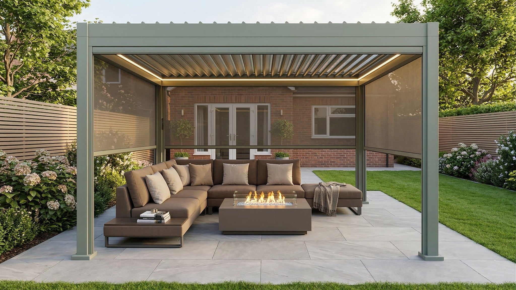 ✔ Adjustable Double-Louvred Roof – offers better ventilation, increased rain and wind protection, improved durability, and a more stylish, versatile design compared to single-louvred roofs.