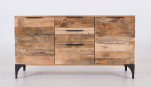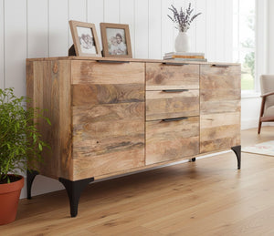 A perfect balance of contemporary style and natural character, this Handcrafted Mango Wood Sideboard brings warmth, texture and practicality into any modern home. Made from solid mango wood and finished with sleek black metal legs and handles, it delivers a striking industrial-meets-Scandi aesthetic.