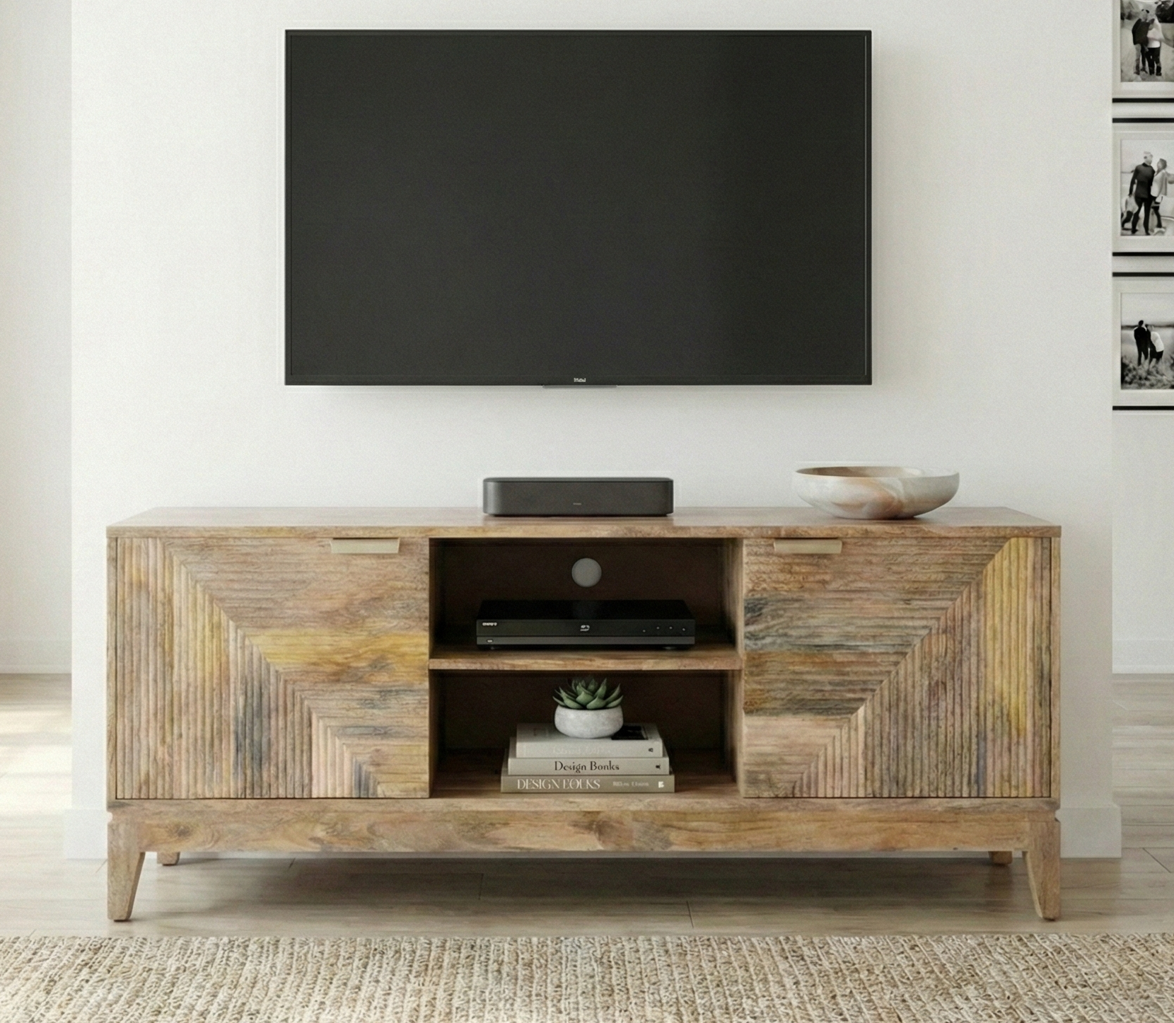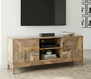 Designed to anchor your living room with organic warmth and modern texture, this 151cm Solid Mango Wood TV Unit is the perfect blend of boho-luxe aesthetics and practical media storage.